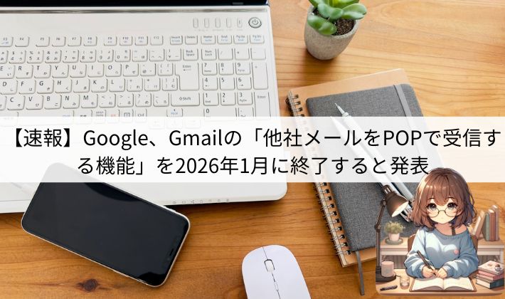 Googleは、2026年1月をもって Gmail の「他のアカウントのメールをPOP経由で受信する機能」を終了すると発表しました。