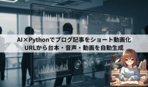 Programming 2024.12.072024.12.09 目次 PythonRuby Python AI×Pythonでブログ記事をショート動画化|URLから台本→音声→動画まで自動生成してみた 【Python】URLからショート動画の台本を自動生成する方法|Gemini APIで簡単作成 自作Pythonツールを社内公開!自分のPCを簡易サーバーにして共有する方法(Streamlit) PythonとSQLiteで作る!子供のお手伝いポイントカードシステムの作成ガイド Dashでダッシュボード作成を始めよう! | 実践編 Dashでダッシュボード作成を始めよう! | 応用編 Dashでダッシュボード作成を始めよう! | 発展編 Dashでダッシュボード作成を始めよう! | 基礎編 PythonとTkinterを使って大量のカラム名を管理 Tkinterを使ったシンプルなテキスト情報カウンターアプリの作成 Ruby GitHub Codespacesで始めるRails開発:環境構築編 GitHub Codespacesで始めるRails開発:導入編